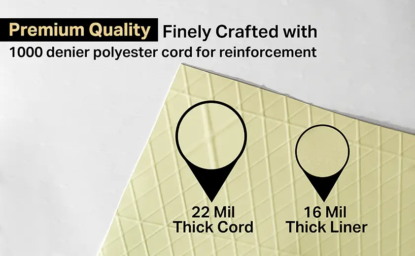 GuardianLiner® SR, crawl space vapor barrier is made using 100% virgin multi-directional polyethylene film on the top a bottom, infused with our proprietary anti-fungal and anti-microbial treatment. A molten tie layer permanently bonds the films together over a cord reinforcement providing bilateral strength, increased durability and unmatched toughness. This vapor barrier is purpose build and made in an ISO certified facility to ensure the quality is consistent and can provide the highest durability, the longest service life and the best value. With millions of square feet installed across the United States, Canada and Australia you can count on GuardianLiner®.